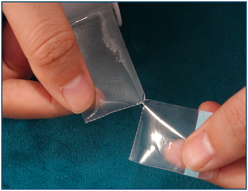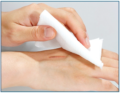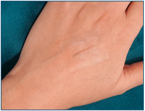 Presiona suavemente el parche sobre el área de la cicatriz.